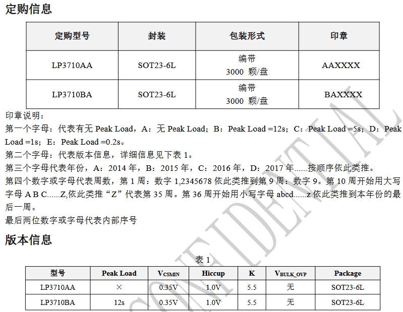 LP3710AA:封裝絲印為“AAXXXX”,其中“A”表示無Peak Load功能。