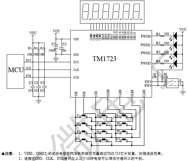 TM1723是一種帶鍵盤掃描接口的LCD驅(qū)動(dòng)控制專用電路,內(nèi)部集成有MCU 數(shù)字接口、數(shù)據(jù)鎖存器、LCD