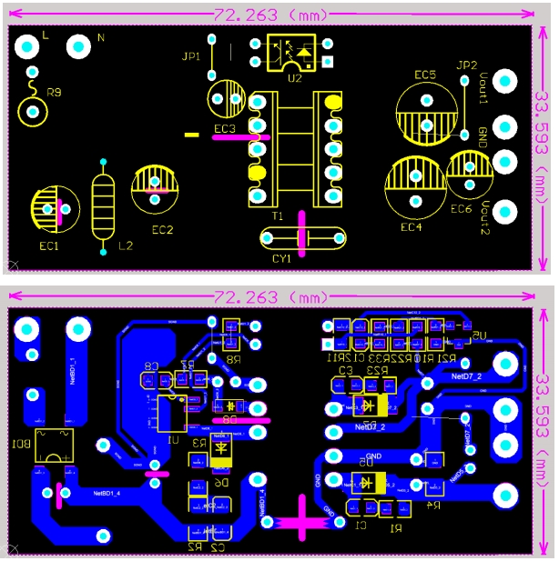實物圖展示了BPA8604D電源模塊的緊湊結(jié)構(gòu)和簡潔布局。整個電路板采用了單面板設(shè)計,尺寸僅為72mm×33.5mm,適合安裝在空間有限的設(shè)備中。電路板上的元件布局合理,走線清晰,便于生產(chǎn)制造和維修。通過實物圖,我們可以直觀地感受到BPA8604D電源模塊的高效能和可靠性,其簡潔的設(shè)計理念和精湛的制造工藝,使其成為了現(xiàn)代電源設(shè)計的典范之作。