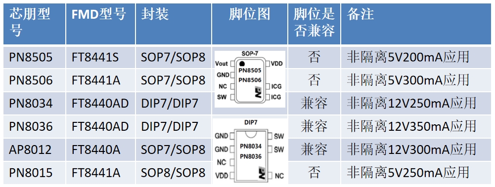 芯朋微的PN8034和PN8036型號與FT8440AD在封裝和腳位上完全兼容。PN8034是非隔離12V250mA應(yīng)用,而PN8036是非隔離12V350mA應(yīng)用,F(xiàn)T8440AD能夠無縫替代這兩款型號,無需對電路進(jìn)行任何修改,即可實現(xiàn)相同的功能和性能。