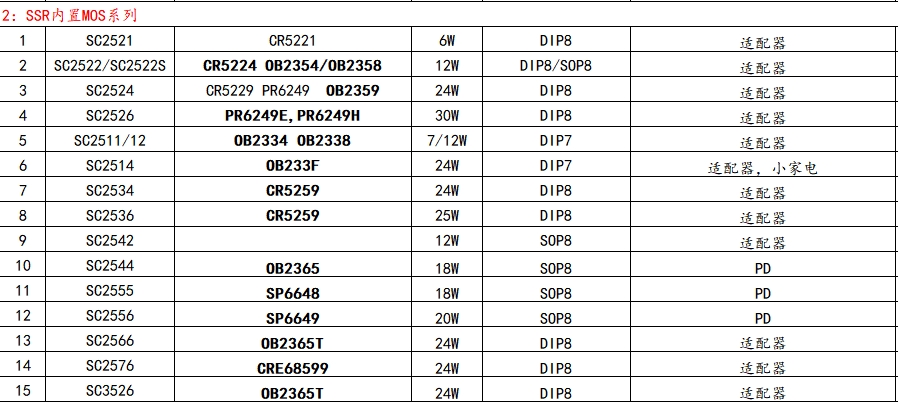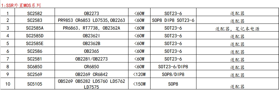 SSR內(nèi)置MOS系列是鼎芯微電子推出的另一類高效電源管理芯片,適用于適配器、小家電等應(yīng)用場(chǎng)景。以下是該系列部分型號(hào)及其替代型號(hào):