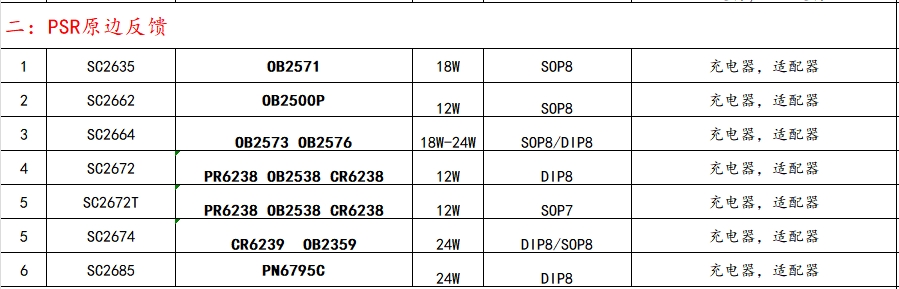 PSR(Primary Side Regulation)原邊反饋系列是鼎芯微電子推出的一類高效電源管理芯片,適用于充電器、適配器等應(yīng)用場(chǎng)景。以下是該系列部分型號(hào)及其替代型號(hào):