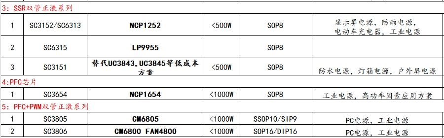 SSR雙管正激系列是鼎芯微電子推出的一類高性能電源管理芯片,適用于高功率應(yīng)用場(chǎng)景,如顯示屏電源、防雨電源、電動(dòng)車充電器、工業(yè)電源等。以下是該系列部分型號(hào)及其替代型號(hào):