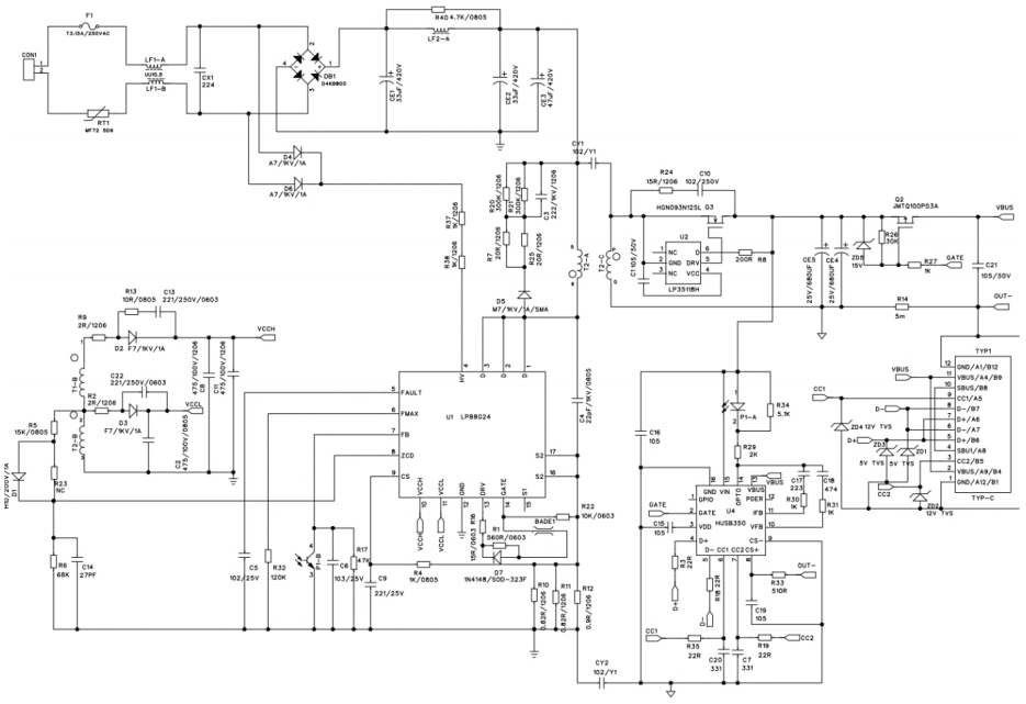 在這一背景下,芯茂微電子憑借其在電源管理芯片領(lǐng)域的深厚技術(shù)積累和創(chuàng)新能力,推出了合封氮化鎵LP88G24DCD的PD65W適配器參考設(shè)計。這一設(shè)計充分展現(xiàn)了GaN技術(shù)的優(yōu)勢,同時也體現(xiàn)了芯茂微電子在電源管理芯片設(shè)計上的先進理念。