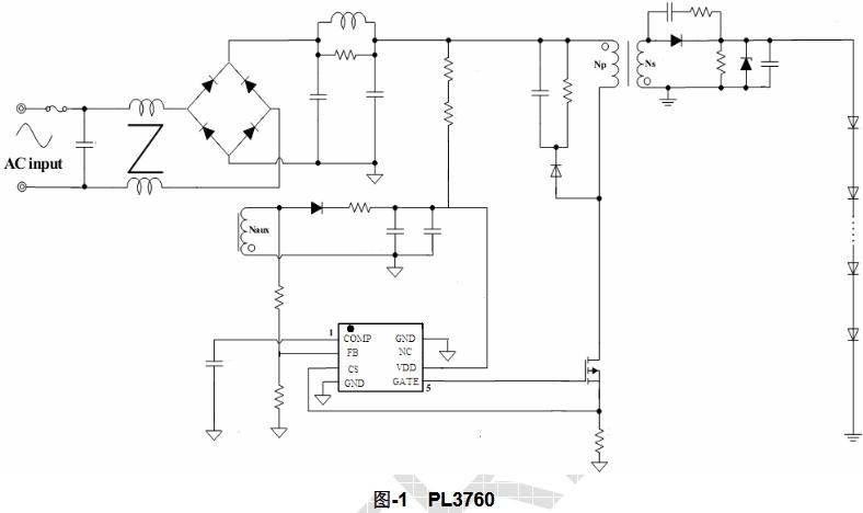 在現(xiàn)代LED照明系統(tǒng)中,高效能、高功率因數(shù)以及高精度的電流控制是實(shí)現(xiàn)優(yōu)質(zhì)照明效果的關(guān)鍵。PL3760作為一款隔離型原邊控制LED驅(qū)動(dòng)芯片,以其卓越的性能和創(chuàng)新的設(shè)計(jì),為L(zhǎng)ED驅(qū)動(dòng)領(lǐng)域帶來了新的突破。本文將深入探討PL3760的主要特性、典型應(yīng)用以及其內(nèi)部框架圖所揭示的功能細(xì)節(jié)。