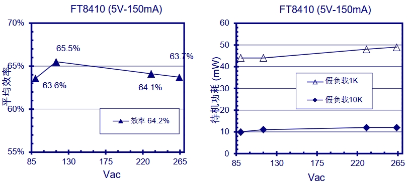 FT84xx系列芯片在效率方面表現(xiàn)出色。以FT8410為例,在不同輸入電壓下,其效率均能達到60%以上,最高可達70%。這種高效率意味著在將交流電轉(zhuǎn)換為直流電的過程中,能量損失極小,能夠有效減少能源浪費,降低設(shè)備的運行成本。同時,該芯片的功耗極低,僅為10 - 50mW,這一特性使其在待機狀態(tài)下幾乎不消耗能量,極大地延長了設(shè)備的使用壽命。