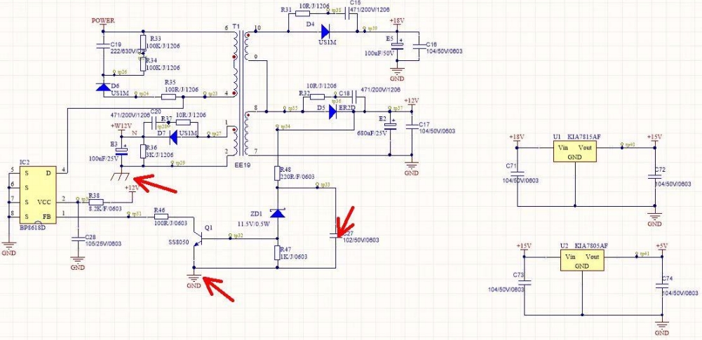 變壓器 T1:實(shí)現(xiàn)電壓轉(zhuǎn)換和電氣隔離,其多繞組結(jié)構(gòu)能夠同時(shí)提供多個(gè)獨(dú)立的輸出電壓。
