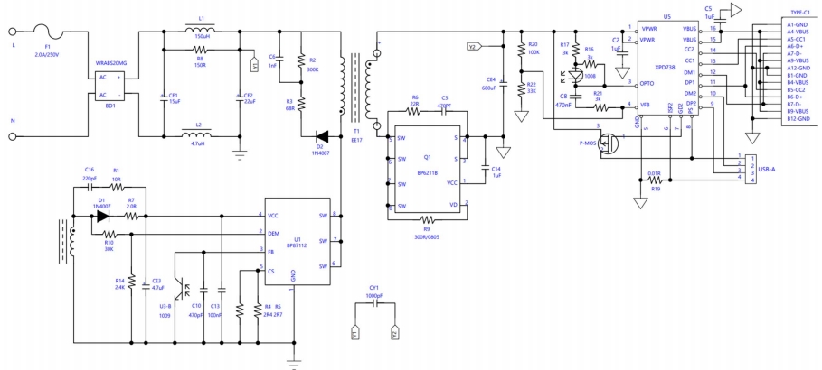 在當(dāng)今快速發(fā)展的電子設(shè)備市場(chǎng)中,電源適配器的性能和效率對(duì)于設(shè)備的穩(wěn)定運(yùn)行至關(guān)重要。隨著USB-C接口和USB-PD協(xié)議的廣泛應(yīng)用,市場(chǎng)對(duì)高性能、高效率的電源適配器的需求日益增加。本文將詳細(xì)介紹基于BP87112和BP6211B芯片的20W A+C電源適配器參考設(shè)計(jì),該設(shè)計(jì)支持12V/1.67A、9V/2.22A和5V/3A的輸出規(guī)格,旨在為用戶提供一個(gè)高效、可靠的電源解決方案。