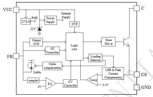 VCC 供電模塊:為芯片內(nèi)部的各個模塊提供穩(wěn)定的電源,確保芯片的正常工作。