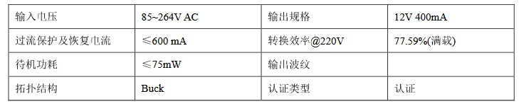 在過(guò)流保護(hù)方面,該方案的過(guò)流保護(hù)及恢復(fù)電流為≤600 mA,能夠有效防止因電流過(guò)大而導(dǎo)致的損壞。在轉(zhuǎn)換效率方面,當(dāng)輸入電壓為 220V 時(shí),其轉(zhuǎn)換效率高達(dá) 77.59%(滿載),這一高效的轉(zhuǎn)換效率不僅能夠減少能源浪費(fèi),還能降低電源的發(fā)熱量,提高電源的使用壽命。此外,該方案的待機(jī)功耗僅為≤75mW,符合現(xiàn)代節(jié)能理念。其拓?fù)浣Y(jié)構(gòu)為 Buck,這種結(jié)構(gòu)具有簡(jiǎn)單、高效、穩(wěn)定的特點(diǎn),能夠有效提高電源的性能和可靠性。在認(rèn)證類型方面,該方案已經(jīng)通過(guò)了相關(guān)認(rèn)證,確保了其符合安全和質(zhì)量標(biāo)準(zhǔn)。