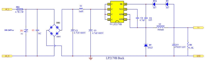該電源方案的輸入電壓范圍為 85~264V AC,能夠適應(yīng)不同國(guó)家和地區(qū)的電網(wǎng)電壓,具有廣泛的適用性。其輸出規(guī)格為 12V 400mA,能夠?yàn)樽詣?dòng)卷發(fā)器提供穩(wěn)定的電源。