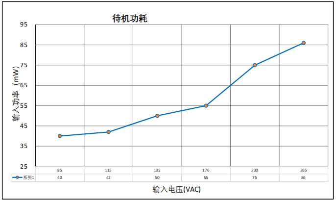 從圖中可以看出,BP86513D在不同輸入電壓下的待機(jī)功耗均低于100mW,符合節(jié)能標(biāo)準(zhǔn)。