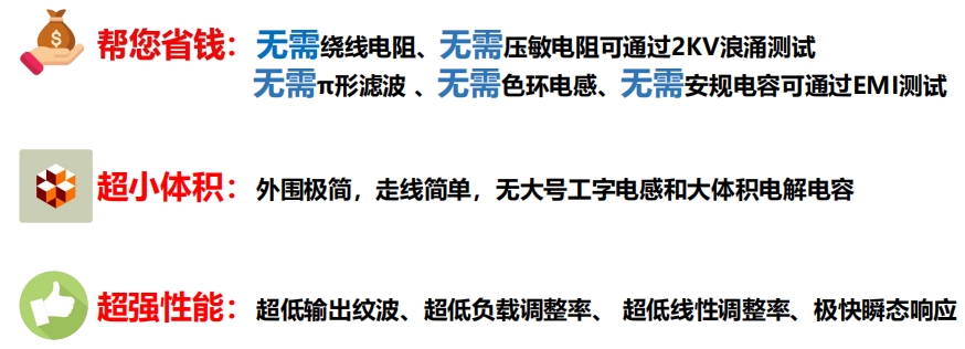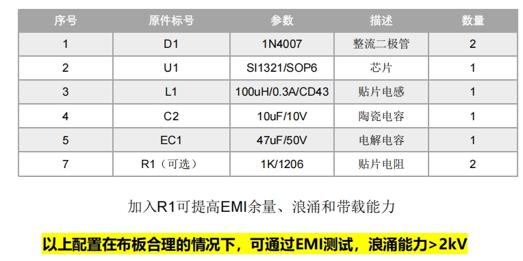 SI1321X系列無(wú)需繞線電阻、壓敏電阻,即可通過(guò)2KV浪涌測(cè)試;無(wú)需π形濾波、色環(huán)電感、安規(guī)電容,也能輕松通過(guò)EMI測(cè)試。這種設(shè)計(jì)極大地簡(jiǎn)化了電路設(shè)計(jì),減少了元件數(shù)量,降低了成本,同時(shí)也提高了系統(tǒng)的可靠性和穩(wěn)定性。