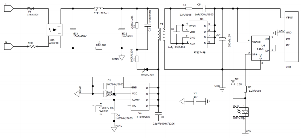 FT8493KA采用恒功率控制技術(shù),確保在不同輸入電壓和負載條件下,輸出功率保持穩(wěn)定。這種設計使得充電器能夠在各種電網(wǎng)波動和負載變化的情況下,為設備提供穩(wěn)定的充電功率,提高了充電效率和設備的使用壽命。