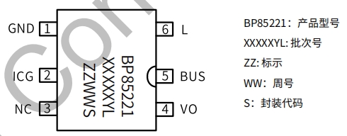 BP8522SL 的管腳封裝圖清晰地展示了其管腳布局和連接方式。芯片共有 6 個管腳,每個管腳都有明確的功能定義,確保了電路設(shè)計的簡潔性和可靠性。