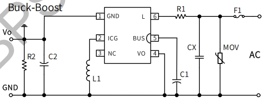 BUS(管腳 5):內(nèi)置整流橋二極管的陰極,連接到母線電容的正端。該管腳為高壓啟動電路和自供電電路提供了電源輸入,并確保母線電壓能夠穩(wěn)定地為芯片供電。