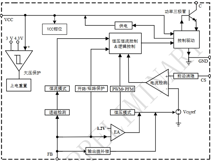 芯片通過檢測變壓器原邊的電流和電壓實現(xiàn)恒流和恒壓功能,能夠提供高精度的輸出控制。同時,其內(nèi)置的輸出線損補償技術(shù)可以有效補償輸出電流在輸出線上的損耗壓降,進(jìn)一步提高輸出精度。