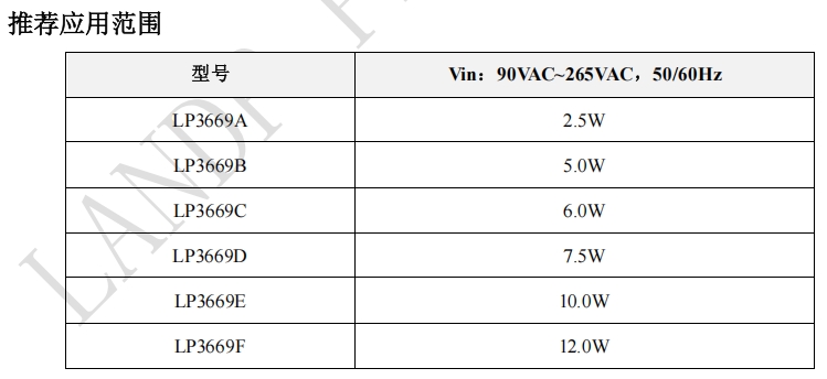LP3669系列芯片根據(jù)不同的輸出功率需求,提供了多種型號選擇。以下是該系列的主要型號及其輸出功率范圍: