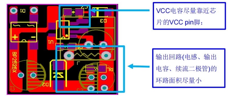 Vout電壓與續(xù)流二極管的正向壓降(Vf)和供電二極管的Vf有關(guān),尤其是重載下,續(xù)流二極管上的壓降損失較多會(huì)導(dǎo)致調(diào)整率變差。續(xù)流二極管推薦選用GPP工藝、42mil、ES1J超快恢復(fù)二極管;Vcc二極管推薦選用M7或A7。