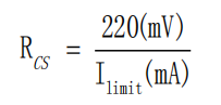 Rcs電阻的選擇需綜合考慮負(fù)載電流和電感電流紋波,并留有余量。由于內(nèi)部比較器延遲,實(shí)際CS_TH略高于芯片內(nèi)部200mV基準(zhǔn)電壓。CS電阻計(jì)算公式為: