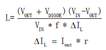 BP2522D可工作于連續(xù)導(dǎo)通模式(CCM)、不連續(xù)導(dǎo)通模式(DCM)等多種模式。電感選擇需綜合考慮感量、峰值電流和平均電流。小感量電感能減小尺寸、降低成本并改善動(dòng)態(tài)響應(yīng),但會(huì)增大峰值電流和輸出紋波,降低系統(tǒng)效率。大感量電感可提高效率,但尺寸較大,動(dòng)態(tài)響應(yīng)較慢。實(shí)際應(yīng)用中,需綜合考慮動(dòng)態(tài)響應(yīng)、電感尺寸、效率、實(shí)際帶載電流和芯片溫升等因素,選擇合適的電感。電感計(jì)算公式為: