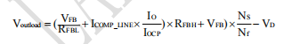 其中,RFBH是FB外接的上偏電阻,RFBL是FB外接的下偏電阻,ICOMP_LINE是滿載經(jīng)過FB上偏電阻的輸出線補償電流,Nf是輔助繞組匝數(shù),VFB是基準電壓(典型值1.0V),VD為輸出續(xù)流管壓降,IO為帶載電流,IOCP為輸出恒流電流。