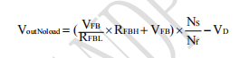 LPK8727通過電阻采樣反激電壓,電阻分壓后得到的電壓與內(nèi)部基準比較形成閉環(huán)后,來恒定輸出電壓Vout。輕載輸出電壓計算公式如下:
