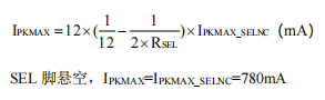 SEL腳外接電阻RSEL,可調(diào)最大峰值電流IPKMAX。公式如下: