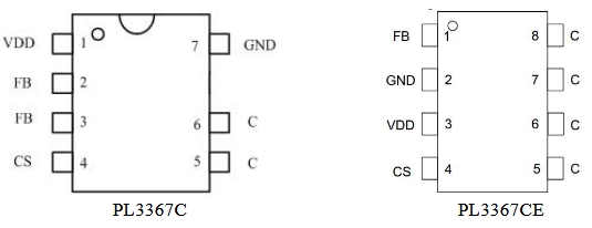 PL3367C提供SOP7和SOP8兩種封裝選項,滿足不同設(shè)計需求。SOP7封裝適用于緊湊型設(shè)計,而SOP8封裝則提供了更多的引腳空間,便于布線和散熱。