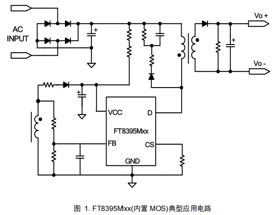 FT8395MBB和FT8395MDB的典型應(yīng)用電路如圖1所示,電路結(jié)構(gòu)簡潔,外圍元件少,便于設(shè)計和生產(chǎn)。
