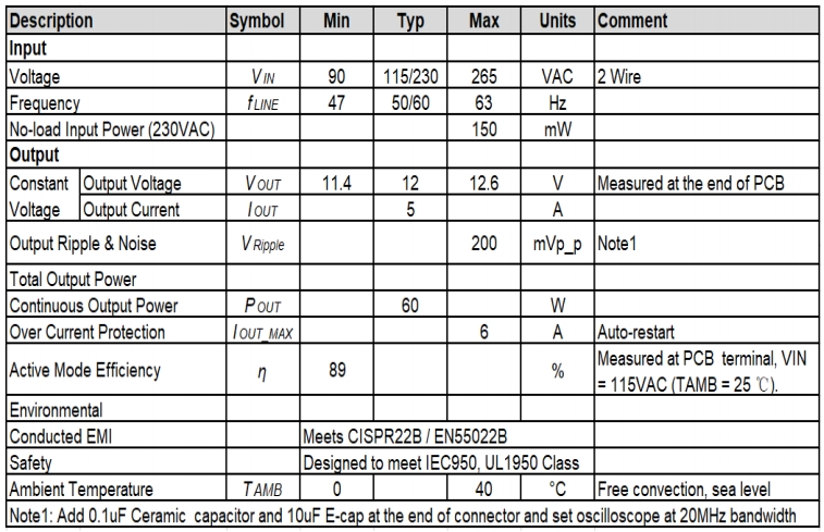 適配器在不同輸入電壓和負(fù)載條件下,均能提供穩(wěn)定的12V輸出電壓。測(cè)試報(bào)告顯示,在90Vac/50Hz和264Vac/60Hz的輸入條件下,輸出電壓的波動(dòng)范圍極小,保證了連接設(shè)備的穩(wěn)定運(yùn)行。