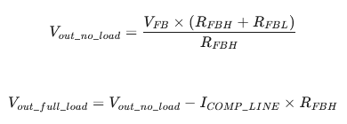 其中,RFBH和RFBL分別為FB外接的上偏電阻和下偏電阻,ICOMP_LINE為滿載時(shí)經(jīng)過FB上偏電阻的輸出線補(bǔ)償電流。