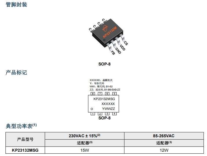 確認功率 ≤ 12 W → KP23132MSGA(SOP-8)