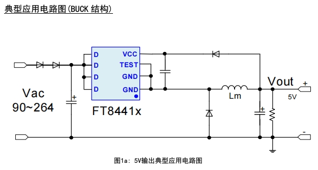 FT8441S 和 FT8441A 在 Buck 結(jié)構(gòu)下的 5V 輸出應(yīng)用電路非常簡潔高效,以下是其典型應(yīng)用電路圖及設(shè)計(jì)要點(diǎn):