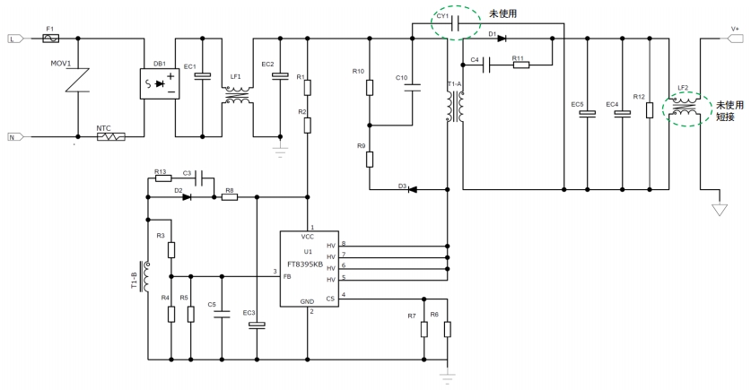 | U1 | FT8395KB | SOP-8 | FMD | 700 V/3 Ω MOSFET 集成 |