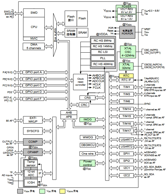 電源管理模塊:內(nèi)置ADC用于電池電壓檢測,實(shí)現(xiàn)低電壓保護(hù)和電量管理。