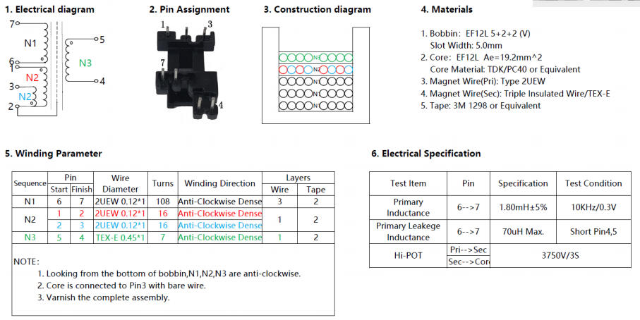 EF12L磁芯,高度11 mm,比EE10還矮,卻做到5 W;