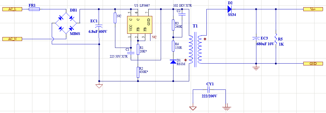 在微型化、低功耗LED照明應(yīng)用中,隔離型輔助電源始終是工程師關(guān)注的重點(diǎn)。深圳三佛科技所代理推出的 LP3667AH 方案,以 2.5W輸出功率、雙繞組結(jié)構(gòu)、極簡BOM 為特色,成為小功率LED模塊、智能開關(guān)、家電指示燈等場景的理想之選。本文將結(jié)合 原理圖、PCB實(shí)物圖、變壓器資料,全面拆解LP3667AH的設(shè)計(jì)亮點(diǎn)與實(shí)戰(zhàn)要點(diǎn)。