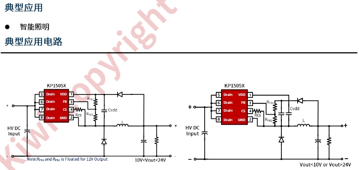 | 小家電輔助 | KP15052SPA | 5 V/350 mA | 通過 FB 分壓設(shè)定 |