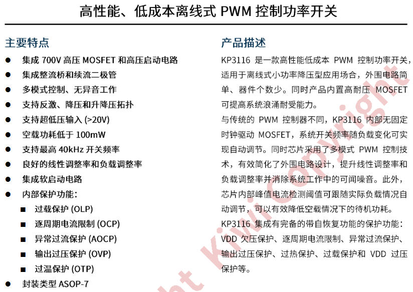 KP3116WPA 把“高壓 MOS + 高壓啟動(dòng) + 多模式 PWM”一口氣塞進(jìn) SOP-7,外圍僅 8 顆料,空載 <100 mW,系統(tǒng)成本 <0.45 元,PCB 1 cm2 搞定。看完這篇,你會(huì)明白什么叫“一粒米”電源。