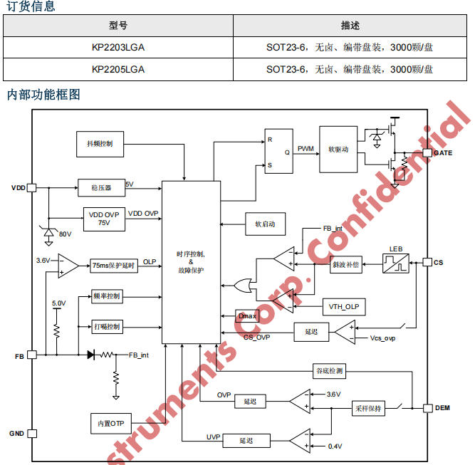KP2203LGA(65 kHz)與KP2205LGA(100 kHz)就是在這種“夾縫”里誕生的電流模式PWM控制器。它把“寬VDD、谷底導(dǎo)通、綠色打嗝、全套保護(hù)”做成了一顆6-pin SOT23,讓工程師告別“外圍堆砌”時(shí)代。