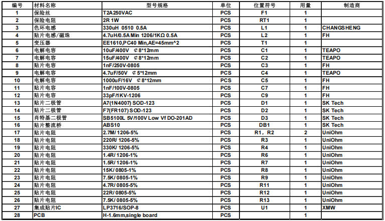 官方照片:正面LP3716+變壓器,背面僅5顆貼片電阻電容,一張銀行卡大小。