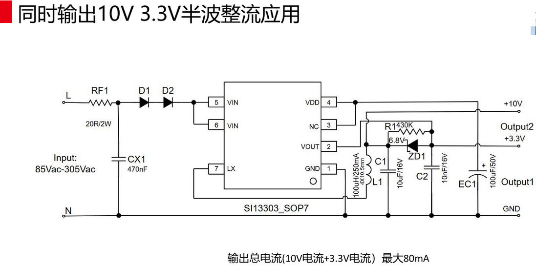 把220V交流變成3.3V或5V,還能塞進(jìn)指尖大小的空間,并且待機(jī)功耗低于一顆LED,是什么體驗(yàn)?SI13303/SI13305這對SOP-7封裝的“非隔離降壓兄弟”把高壓MOSFET、過零檢測、過溫/過壓/限流保護(hù)全部集成在一顆芯片里,外圍僅需5顆通用料即可工作,被工程師戲稱為“史上最省事的市電電源”。