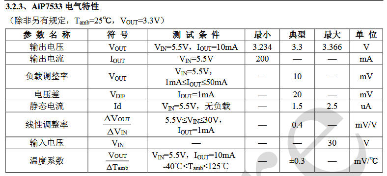 AiP75XX 家族共有 7 位成員:2.5 V、3.0 V、3.3 V、3.6 V、4.0 V、4.4 V、5.0 V,后綴“33”即代表 3.3 V 固定輸出。全系采用 30 V 高壓工藝,壓差僅 20 mV@1 mA,靜態(tài)電流 1.5 μA,堪稱“電池供電界的細(xì)水長流”。