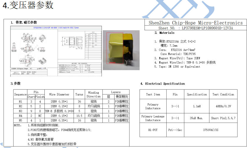 | 磁芯 | ETQ2316,PC95,Ae=74mm2 |