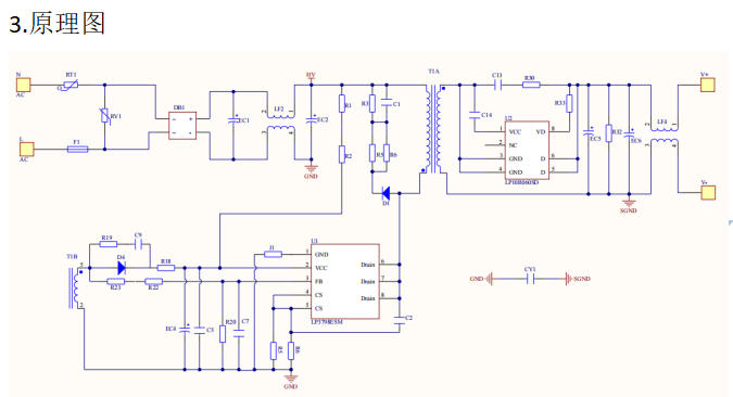 | U1 | LP3798ESM | ASOP6,650V SiC | 原邊PSR |