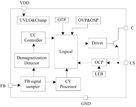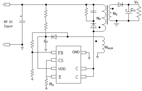 | 1 | FB | 反饋輸入,通過電阻分壓連接輔助繞組,檢測輸出電壓 |
