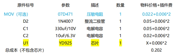 | 對比項(xiàng) | 傳統(tǒng)阻容降壓 | YD925方案 | 優(yōu)勢 |