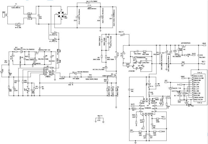 模塊化設(shè)計:主功率板+Type-C協(xié)議小板+EMC濾波小板