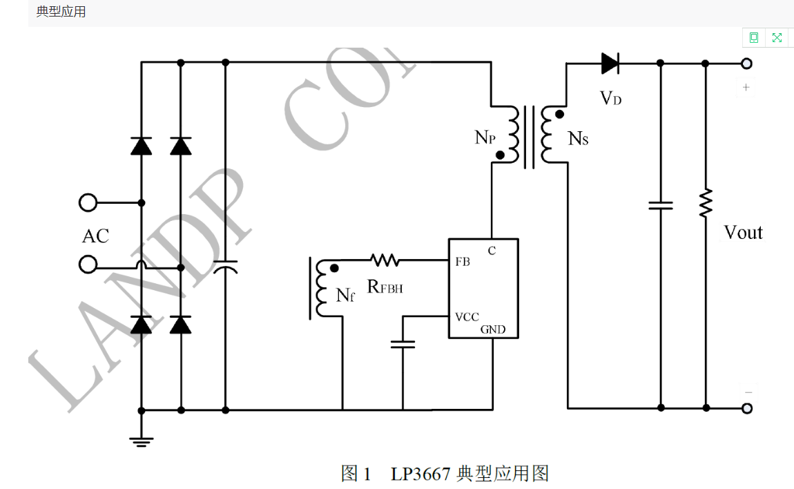 LP3667AH是一款高度集成的隔離型適配器和充電器的自供電 PSR 控制芯片,外圍設(shè)計(jì)極其簡(jiǎn)單。LP3667AH固定原邊峰值電流, 通過變壓器原副邊匝比來設(shè)置輸出恒流點(diǎn);通過設(shè)定一個(gè) FB 電阻來設(shè)置輸出恒壓點(diǎn)。為了實(shí)現(xiàn)系統(tǒng)成本的極致簡(jiǎn)化, LP3667AH 內(nèi)置啟動(dòng)電路,外圍不需要啟動(dòng)電阻,內(nèi)置 FB 下偏電阻,固定峰值電流來實(shí)現(xiàn)取消限流電阻;采用自供電的方式來取消輔助繞組 VCC 供電二極管。